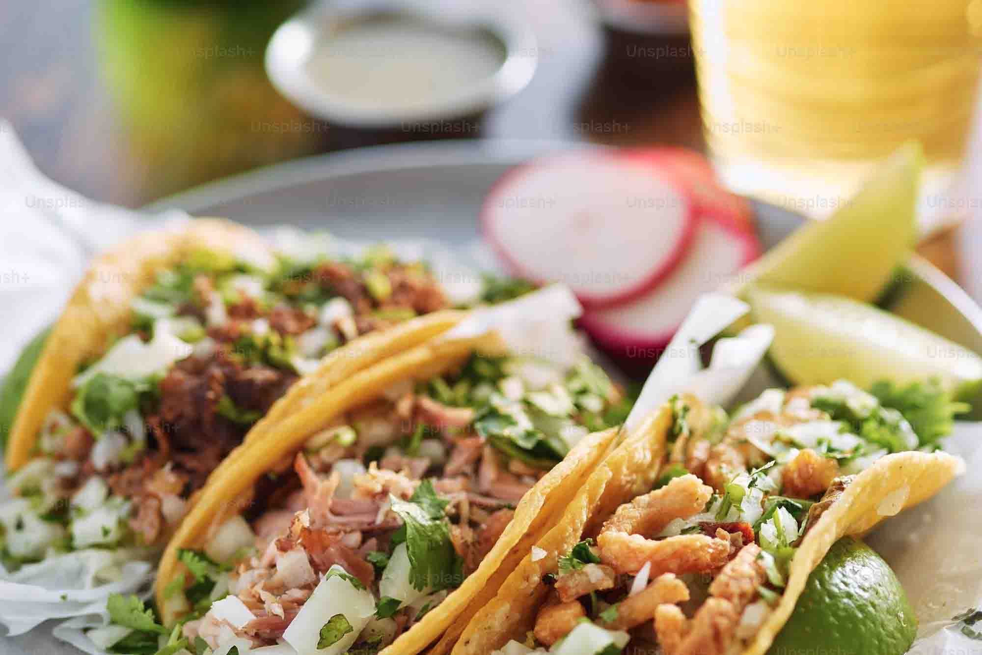 Find MoreThree Mexican style street tacos. Soft corn tortillas with your choice of grilled chicken breast, grilled steak, or pork carnitas. Topped with onions and cilantro. Served with Mexican rice and refried beans.
